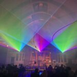 Lichtobjekte mit unseren Lasern setzen. Das Publikum wurde zu sphärischen Synthesizer Musik von